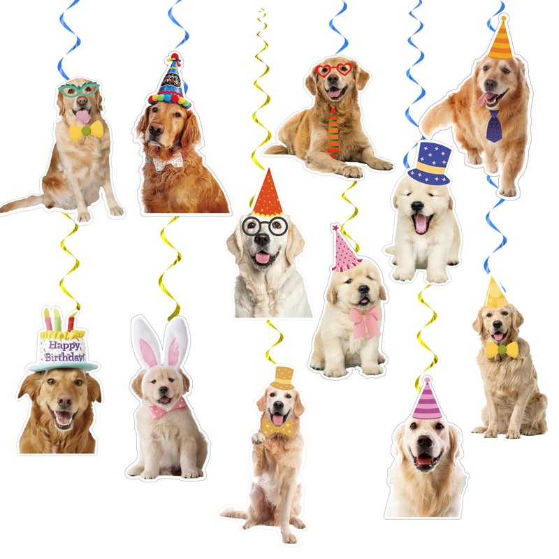 - Golden Retriever Hanging Decorations: You will get total 24 pcs hanging swirls, 12 different designs, each design 2 pcs. Sufficient quantity to meet your golden retriever party decoration needs.