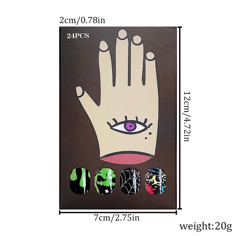 - 🎃[Product Packaging]: You will receive 24 Pcs Halloween Press on Nails +1 Nail File + 24 Pcs Jelly Glue Stickers+1 alcohol cotton+1 wooden stick.These perfect combinations will make it easier for you to create your Halloween nail style according to your needs.(note: this product does not come with glue, please purchase it yourself if needed, please be aware).