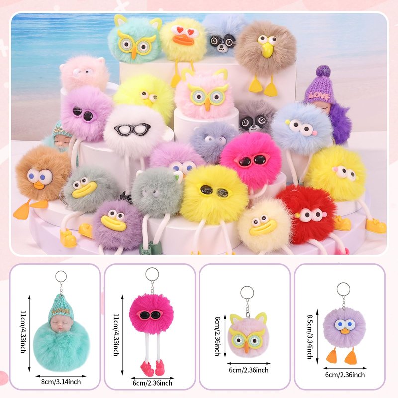 - What Will You Get: You get 24 adorable uniquely design fluffy plush kids keychains toys. The toy set has 4 different sizes from 2.3" to 4.3".