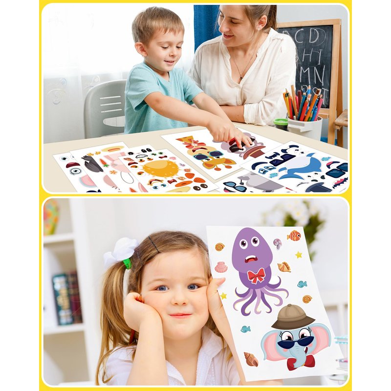 - INTERESTING DESIGN: Great activity for busy little hands! Each sticker sheet has a body sticker, plus an assortment of facial features and accessories that you can choose, so kids can express their creativity and create their own favorite face stickers. It clutivates developing minds of young kids, helping them practice fine motor skills, hand-eye coordination, and problem-solving ability.