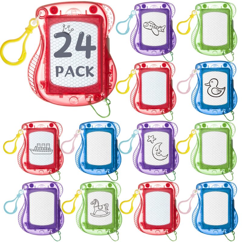 24 Pcs Mini Magnetic Drawing Boards Doodle Board for Kids Backpack Keychain Clip Drawing Board Erasable Sketch and Painting Pad for Classroom Rewards Party Favors Goodie Bag Stuffers (Classic Style)