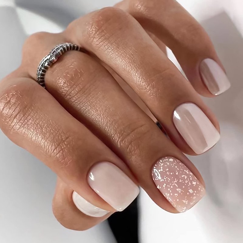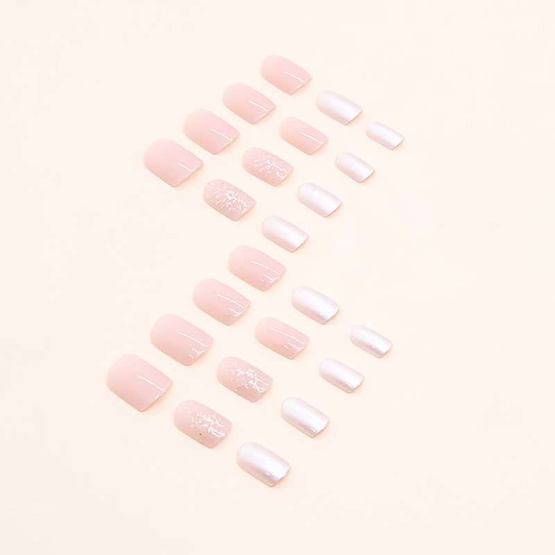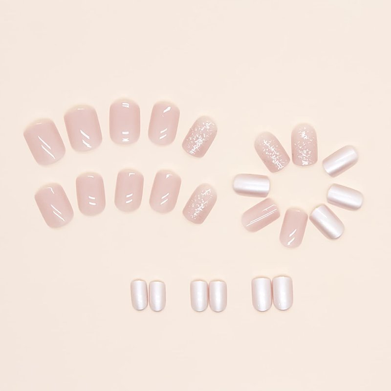 • 【Package Includes】You will get 24 short square fake nails with nude pink gloss acrylic glitter design press on nails in 12 sizes, 1 nail file and 24 jelly glues,1 alcohol bag 1 small wooden stick.