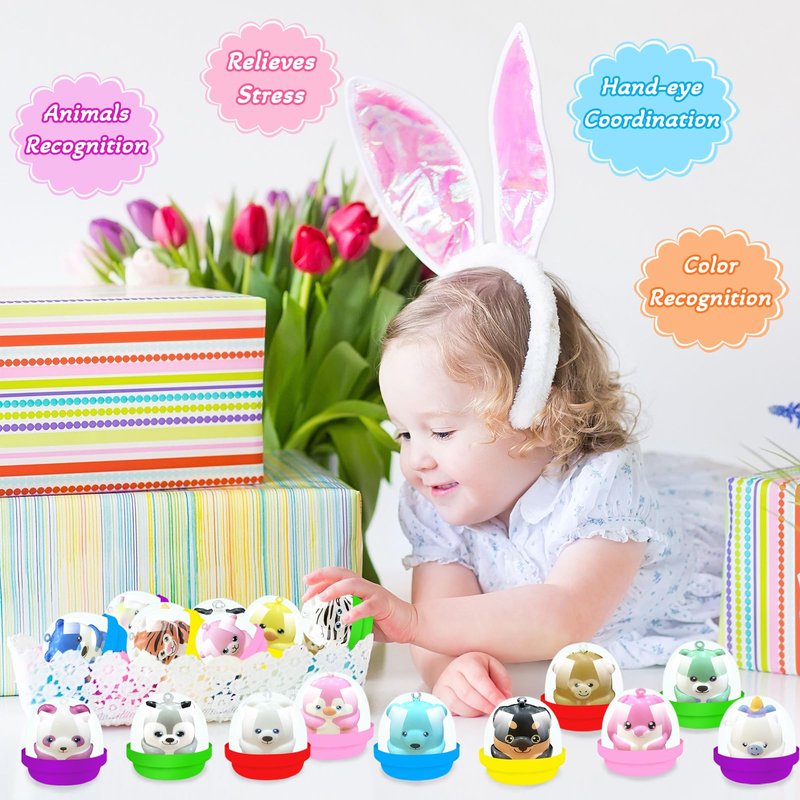 24 Pcs Party Favors Filled Squishy Toys Slow Rising Squishies Toys Easter Eggs Kawaii Animal Stress Relief Toys for Kids Boys Girls Birthday Easter Goody Bags Class Prizes Pinata Fillers