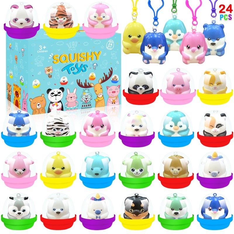 - Perfect Toys or Egg Stuffers for Kids : Our kawaii squishy toys are suitable for all ages to give kids as prize for almost every occasion, such as party favors, easter egg fillers, birthday, christmas, halloween, classroom rewards, carnival prizes, piñata fillers, candy bag fillers. It can also be used as a keychain for easy carrying around or hanging on backpack as a cute decoration or prefilled easter eggs. If you don't like the keychain, you can remove the keychain ring