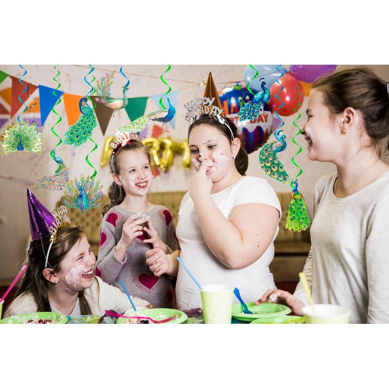 24 Pcs Peacock Hanging Decorations Peacock Hanging Swirls Ceiling Swirls Peacock Birthday Party Supplies for Peacock Party Decorations Zoo Bird Decorations