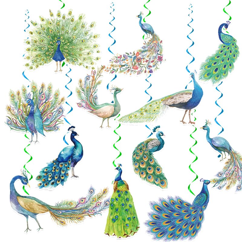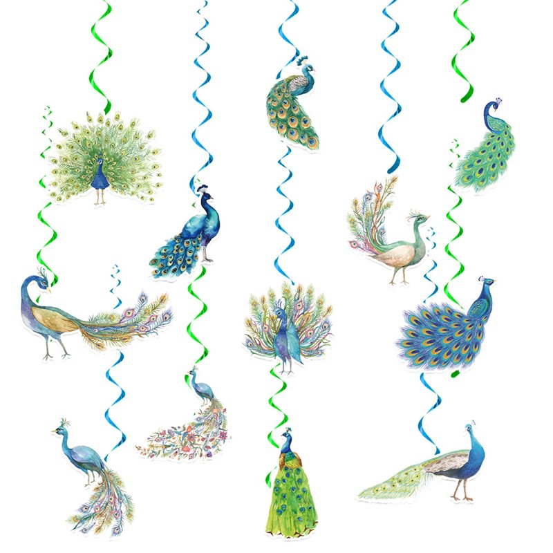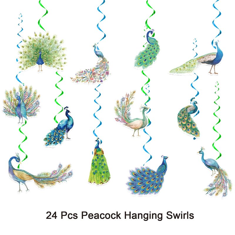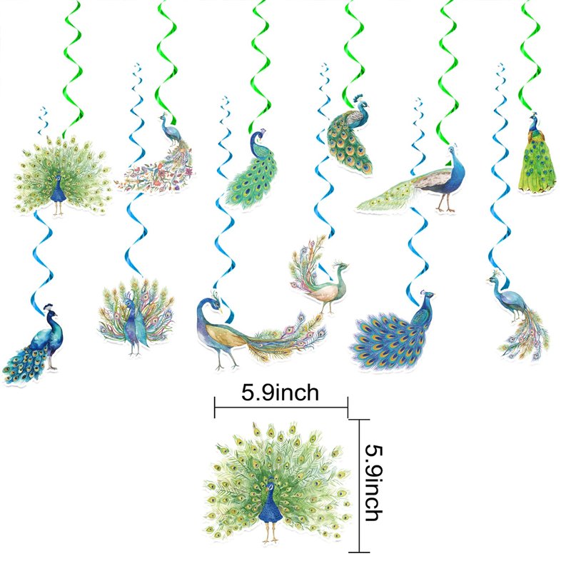 - Peacock Hanging Decorations: You will get total 24 pcs hanging swirls, 12 different designs, each design 2 pcs. Sufficient quantity to meet your peacock party decoration needs.