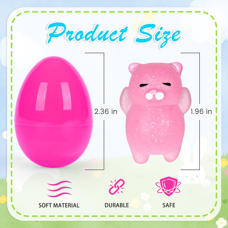 24 Pcs Prefilled Easter Eggs with Mochi Squishy Toys, Easter Eggs with Glitter Mini Soft Animals, Squishy Stress Relief Toys for Easter Basket Stuffers, Easter Eggs Hunt, Classroom Prize Supplies