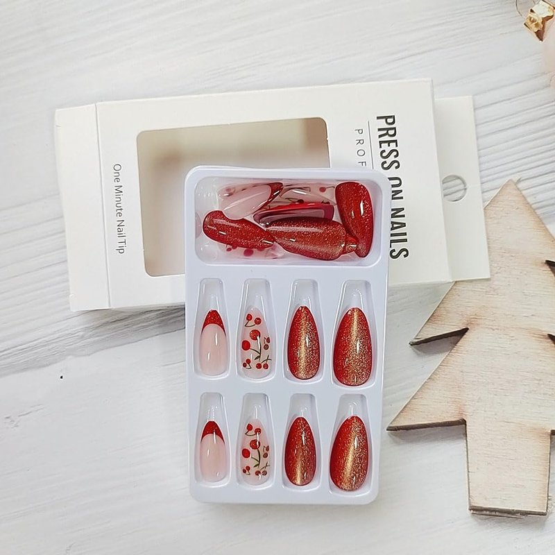 This product includes 24 fake nails with different sizes, wooden sticks and a pack of clean cotton, which is enough to use each finger. You can use too many acrylic nail scissors or nail files. Fake nails/fake nails, if you carefully clean your nails before applying, and avoidcontact with water in the first time after wearing to prevent falling off. When you want long -lasting nail art, I think the use of glue will be more in line with you that you will be more in line with you. expect.