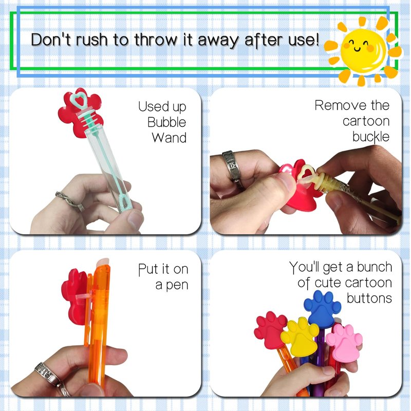 - Bright Color,Multiple Full Dog Paw Elements Design - 6 different colors of bubble wand,The patterns on the straw can come off,They are very humorous.