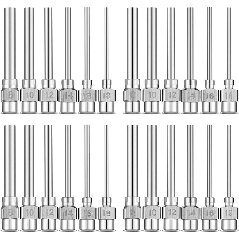 - Package contains: you will receive 24 pieces dispensing needles, including 8G, 10G, 12G, 14G, 16G, 18G in 6 different commonly applied sizes, 4 of each size, sufficient quantity to meet your needs