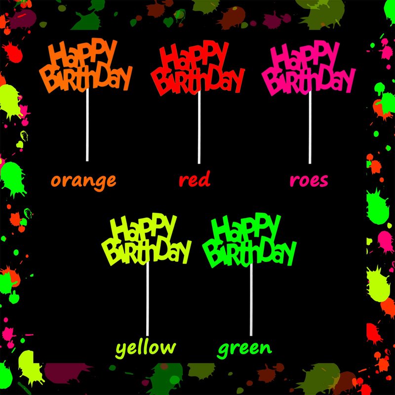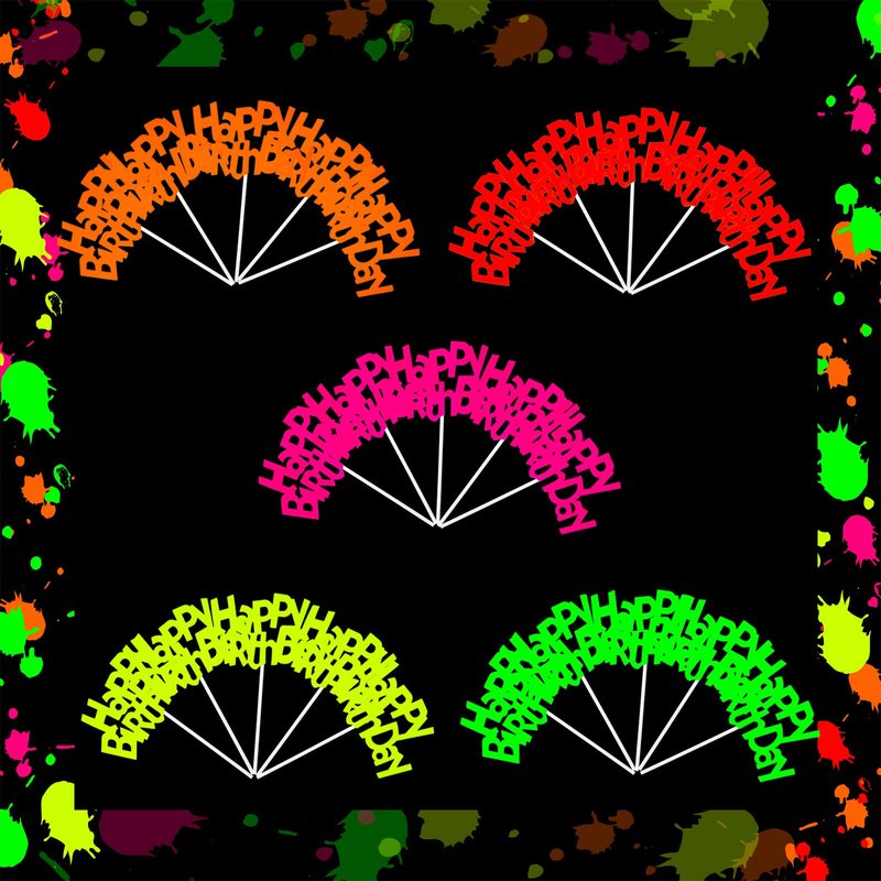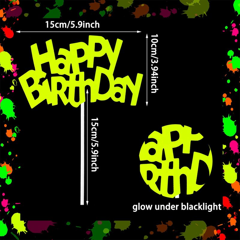 24 Pieces glow neon happy birthday cake toppers for neon birthday party wedding decoration black light reactive party