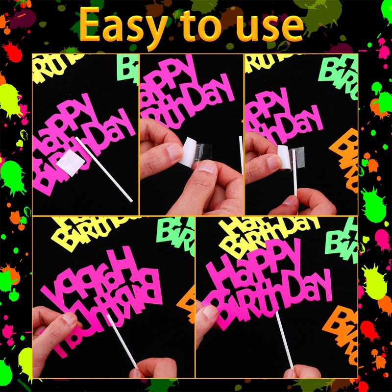 - Quality and nice amount: you will get 24 cake toppers, including 5 colors, these toppers are made of black light reactive paper, beautiful cardstock and are always connected with safe toothpicks or lollipop sticks