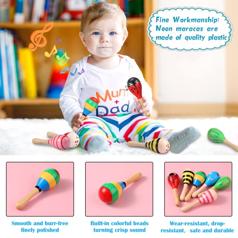 - Moderate Sizes and Assorted Colors: each wooden maracas measures approx. 4.72 x 1.18 inches, suitable size for easy handle; Besides, there are 12 different kinds of styles for you to choose from, colorful and adorable, bringing a lot of fun to your parties