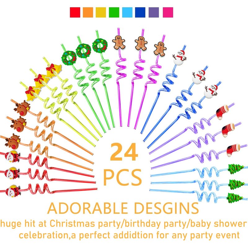 24 Reusable Christmas Straws Christmas Party Favors Christmas Party Decoration Birthday Party Decoration Supplies for Treat Bags Goodie Gifts