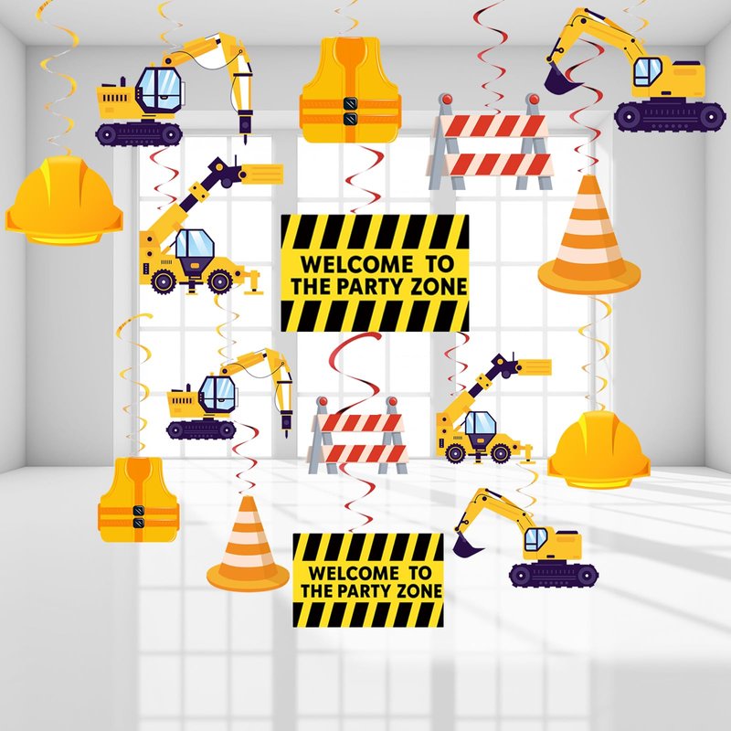 - Great Construction Sign Party Decoration - Revel in the festive atmosphere of your construction sign birthday party with these delightful hanging swirl decorations, guaranteed to make your event a memorable celebration!If you have any dissatisfaction, pls kindly contact us.