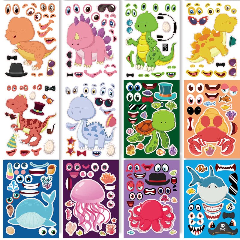 24 Sheets 8.27''×5.9'' Make Your Own Stickers for Kids Toddlers, Make a Face Stickers Mix and Match with Unicorns Dinosaur Horse and Sea Animals for Kids Party Favors Activities