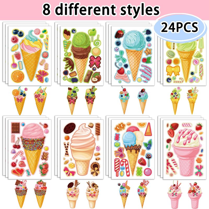 24 Sheets 8.3''×5.9'' Make Your Own Ice Cream Stickers for Toddlers Kids Party Favors, Make a Face Stickers for Kids Activities Supplies Crafts
