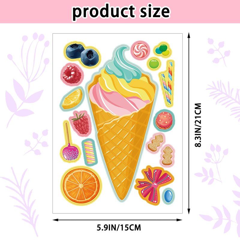 - Package Included: 24 sheets ice cream stickers, 8 different styles, and each style has 3 sheets. 8.3''×5.9'' per sheet, great size for kids to operate