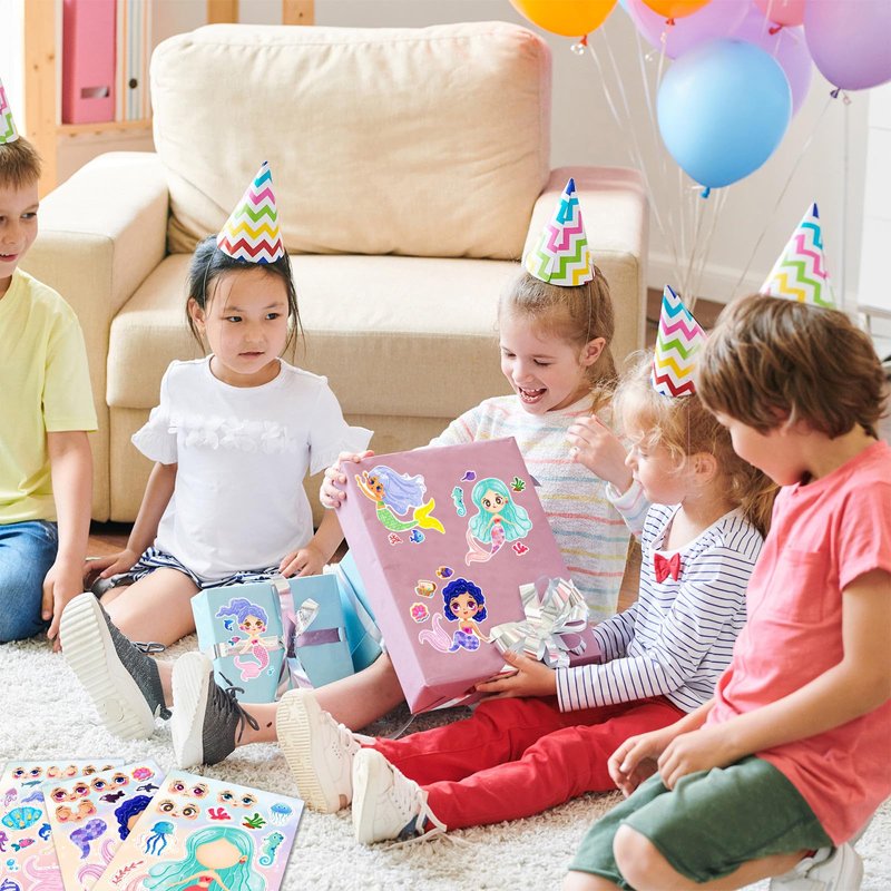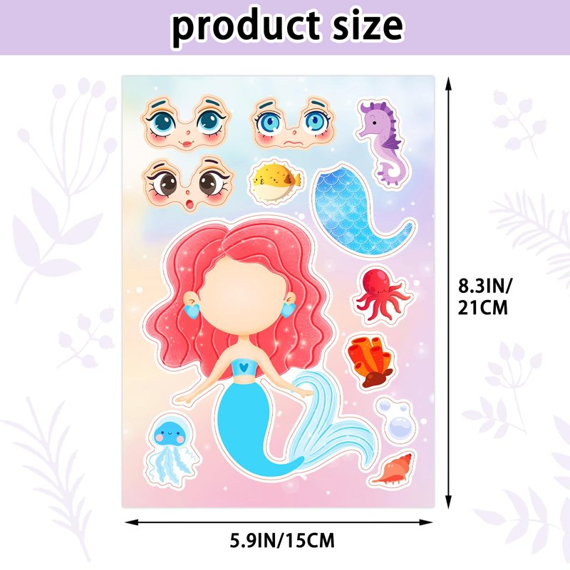 24 Sheets 8.3''×5.9'' Make Your Own Mermaid Stickers for Toddlers Kids Party Favors, Make a Face Stickers for Kids Activities Supplies Crafts