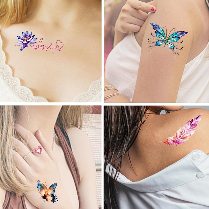 - EASY TO USE - Peel off the clear film, stick the tattoo face down on clean and dry skin, wet the tattoo throughly with water, wait 20-30 seconds, then remove paper, allow tattoo to dry and you will get a beautiful butterfly tattoo. And it can be easily removed just use alcohol or baby oil.