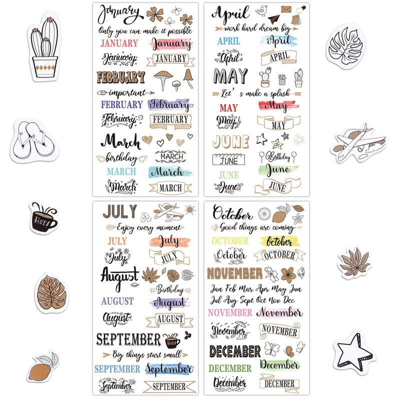 - Monthly Stickers in Quantities: you will receive 24 sheets of scrapbook month stickers in 4 different styles, 6 sheets for each style; The sufficient quantity and assorted designs can suffice your needs for scrapbooking or replacement, and you can also share them with your surrounding friends