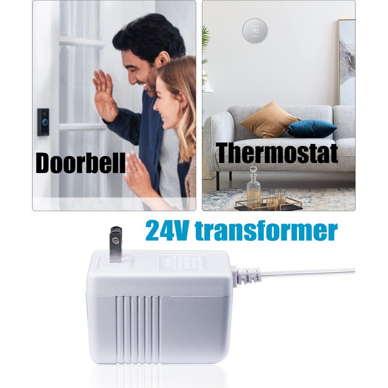 24 Volt Transformer, C Wire Adapter Thermostat, Compatible with Smart Thermostats and Doorbells Power Supply (23ft Cable)
