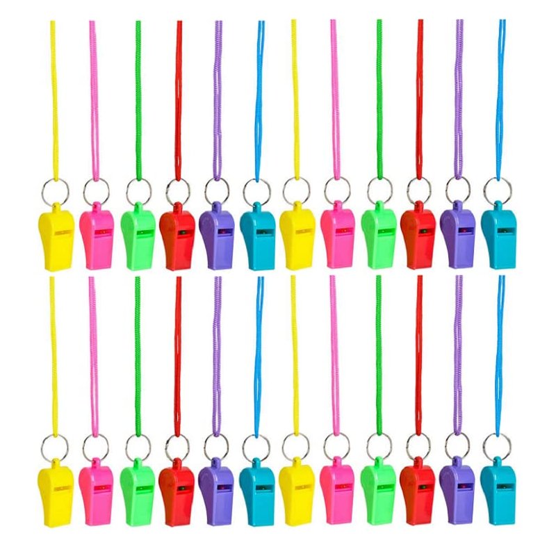 24 Whistle For Kids,Neon Whistle Necklace, Bulk Party Whistles 24 Pack Great Party Favor, Goody Bag Filler,