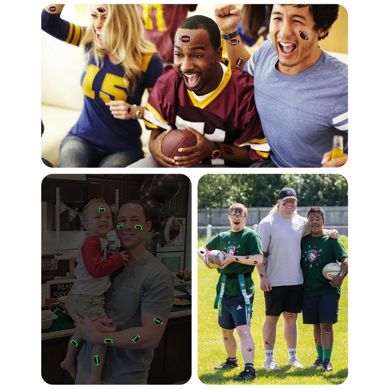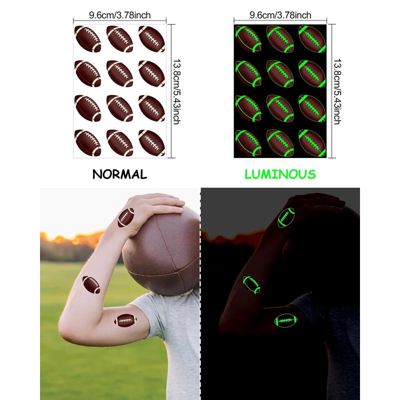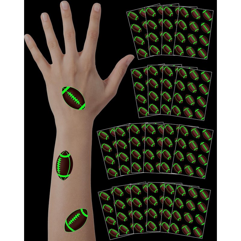 - Glow in The Dark Football party decorations Package includes 240 pieces of Football themed temporary tattoos, which can be used wherever you want, such as arms, face, and hands