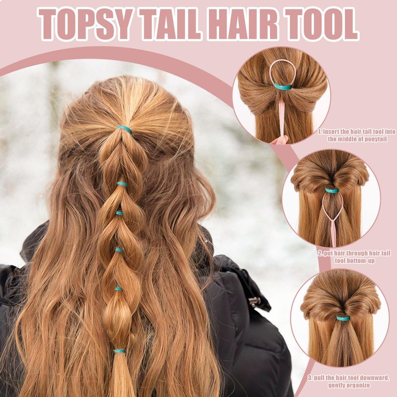 - 【Practical Hair Tools】Topsy tail hair tool, combs and hair clips can assist you in creating cute hairstyles.
