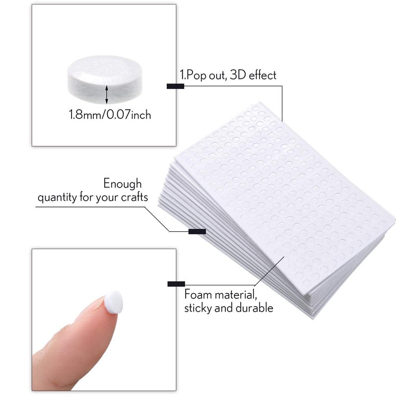 - Eject 3D effect: our adhesive mounts are made of EVA foam, will add dimension to your craft with a slight 3D element, you can also stack the dots together to create more surprises