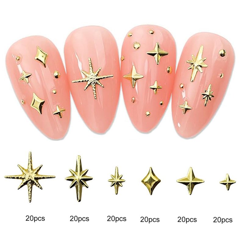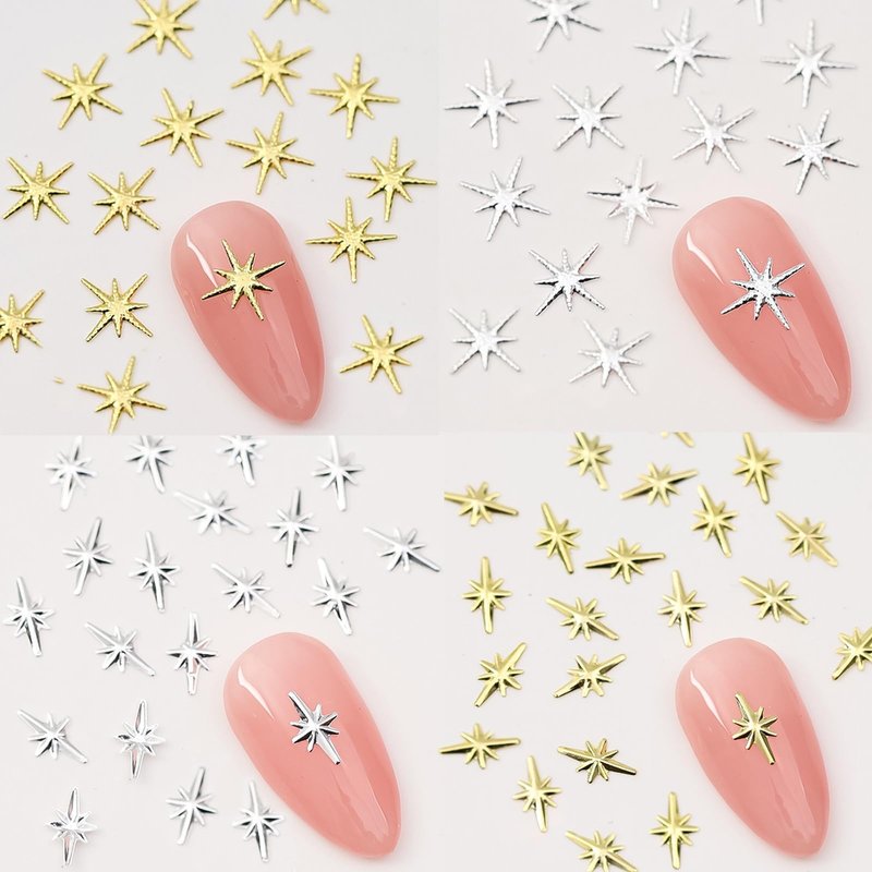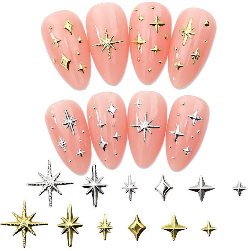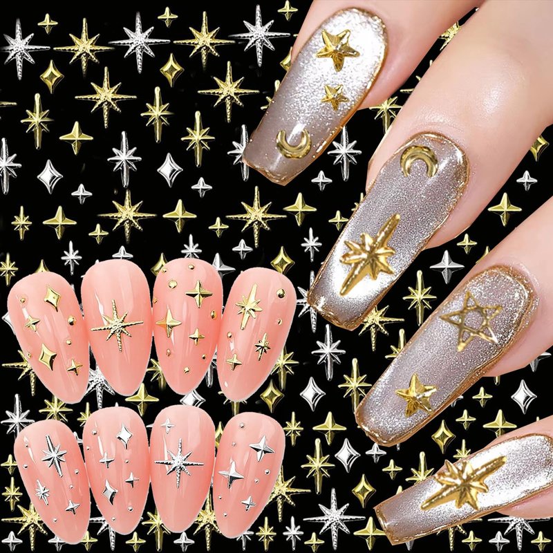 - 240pcs Gold Silver Star Nail Charms 3D Star Charms for Nails Design Metal Stars Nail Art Charms Alloy Nail Studs Star Nail Charm Nail Jewels for Nail Art Supplies Starlight Nail Decor Nail Accessories