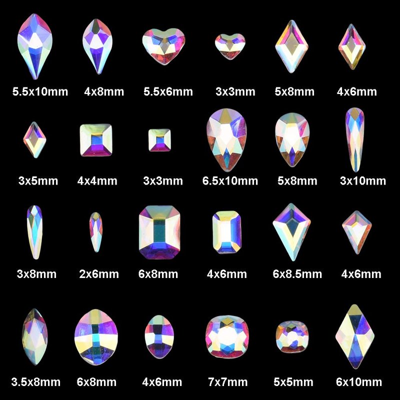 - Very Well Made: These Sparkling AB Crystals are Made of High Quality Glass, At the Most. We Offered All Sizes of Each Shape Crystals In Current Market. Perfect Mix Sizes and Combinations of Shape Gives You a Variety of Nail Designs.