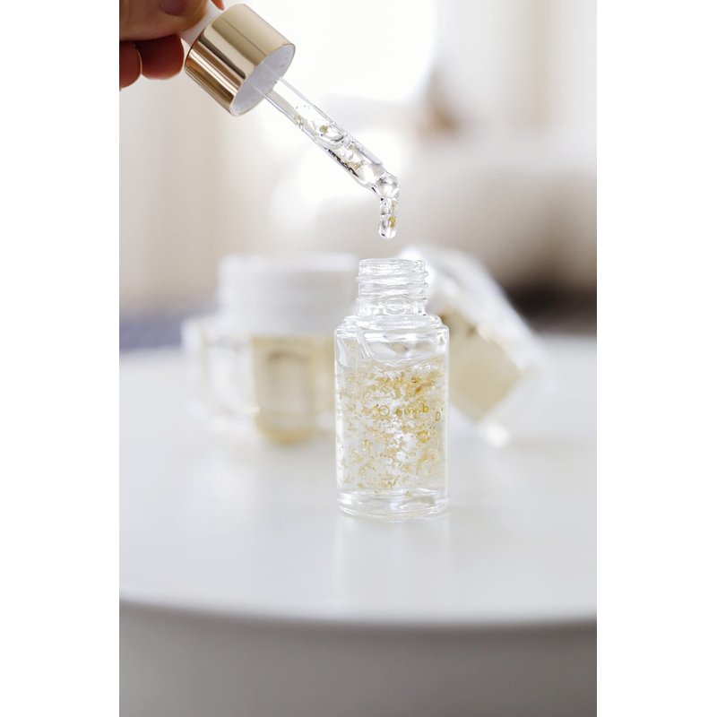 This Gluten Free Gold Makeup is formulated with 24K gold flakes. The potent, skin-loving gel-serum has the complexion-improving results of a serum with the makeup-extending power of a primer—so basically, this one does it all. Use it alone or wear under makeup, and you’ll be primed for anything. Gold antioxidants make your skin appear and feel more youthful. This serum acts as a primer to hydrate and tighten your skin for all day makeup. The secret ingredient is indeed 24K Gold Flakes. Gold flake is an antioxidant which means it works to help heal your skin from damage. This soft, light serum will leave your skin feeling smooth, moisturized and smooth.