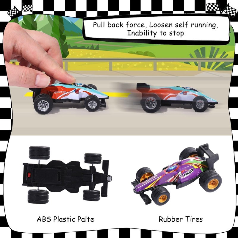 - Durable & Safe for Kids: Crafted from non-toxic, durable plastic, these small race cars are built to withstand hours of play. The pull-back mechanism is easy for kids to operate, making these cars suitable for children aged 3 and up. They’re safe, lightweight, and designed to bring endless joy with every race!