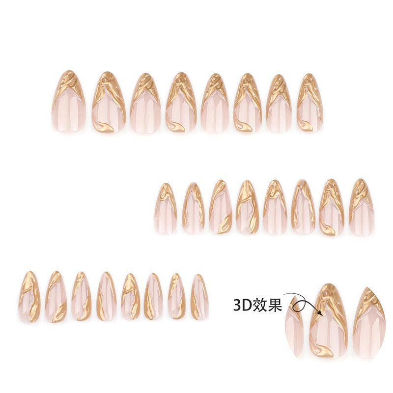 24Pcs Almond Shaped Press on Nails Medium French Tip Fake Nails 3D Gold Glue on Nails Full Cover Acrylic Nails Medium Length False Nail Tips Glossy Stick on Nails Reusable Artificial Nails for Women