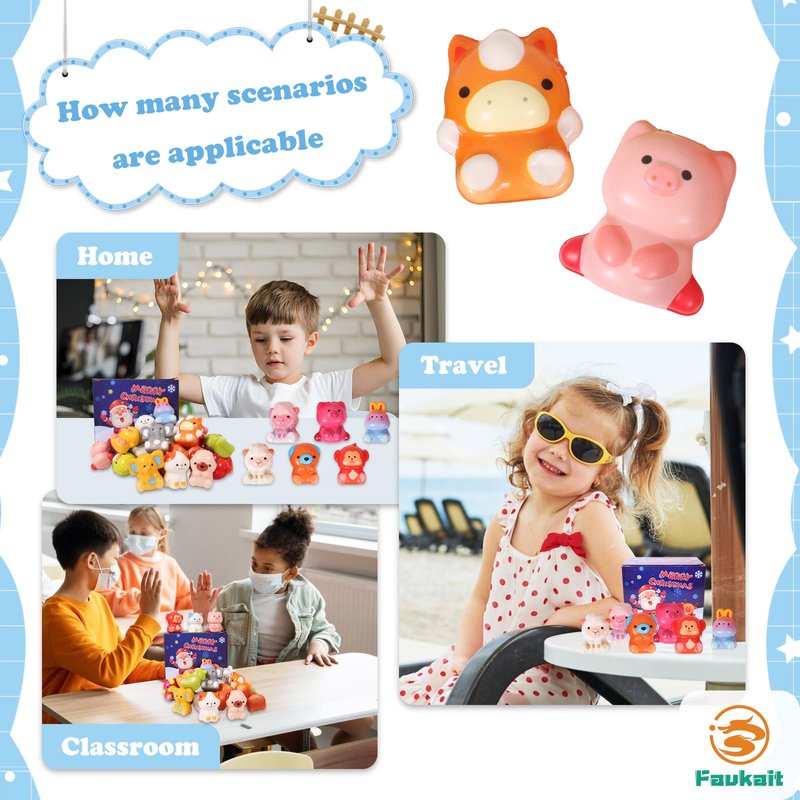 【Cute Animal Slow Rising Squishy Toys】These Animal Slow Rising Squishy Fidget Toys are perfect for kids who love animals. Each pack includes 24 PCS Animal Squishy Toys,12 different animal shapes:elephants, sheep,dogs, cows,monkeys, cats,rabbits and so on.The vibrant colors and cute designs will make your children happy and excited.