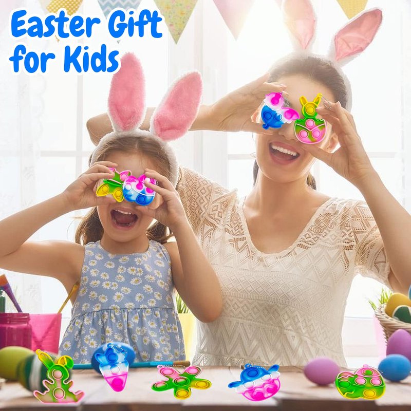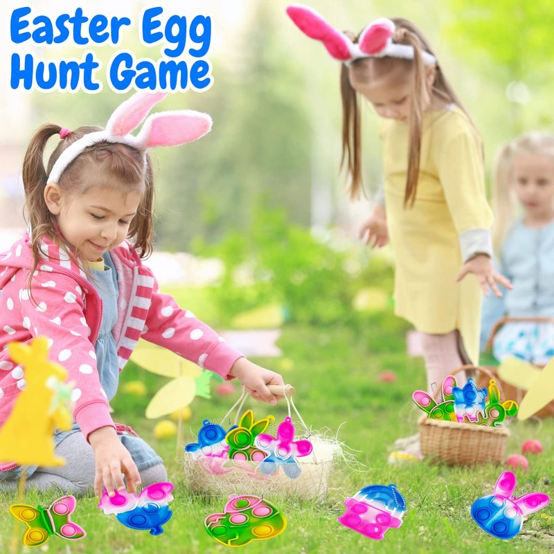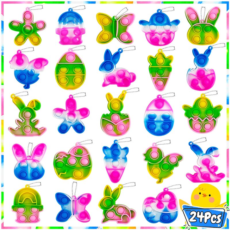 1. The 24 Pack Mini Easter Pop Fidget Toys are perfect for kids, boys, girls, toddlers easter basket stuffers, easter basket fillers, easter gifts, easter toys, easter hunt, party favors, birthday gifts, school classroom rewards, carnival prizes, goodie bags.