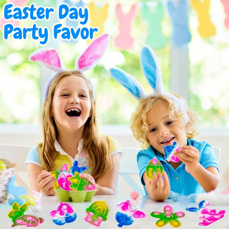 - 🐣【Easter Gifts for Kids】Mini pop Easter keychain bulk perfect for Easter eggs fillers toys, Easter basket stuffers, Easter egg hunt event, party favors, class prizes, school rewards.