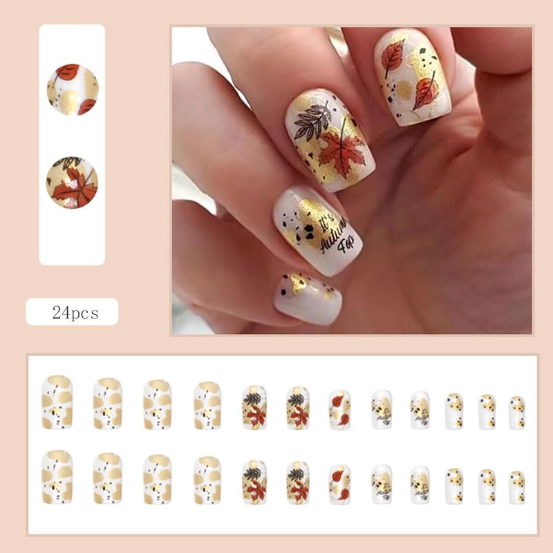 - Fall Manicure: 1 box contains 24 Thanksgiving fake nails, a nail file and 24 jelly glues, the fake nails are divided into 12 different sizes, it is convenient for you to choose the holiday fake nails that suit your nail.
