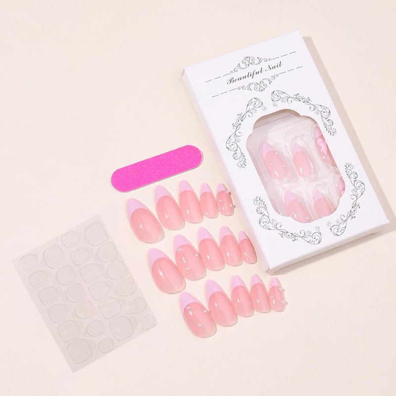 - Package Contents:24Pcs french tip press on nails almond shaped nails+1Pcs Nail File+24Pcs Jelly Glue Stickers+1Pcs Wooden Stick. No need to buy other things, you can get the nail salon-like effect