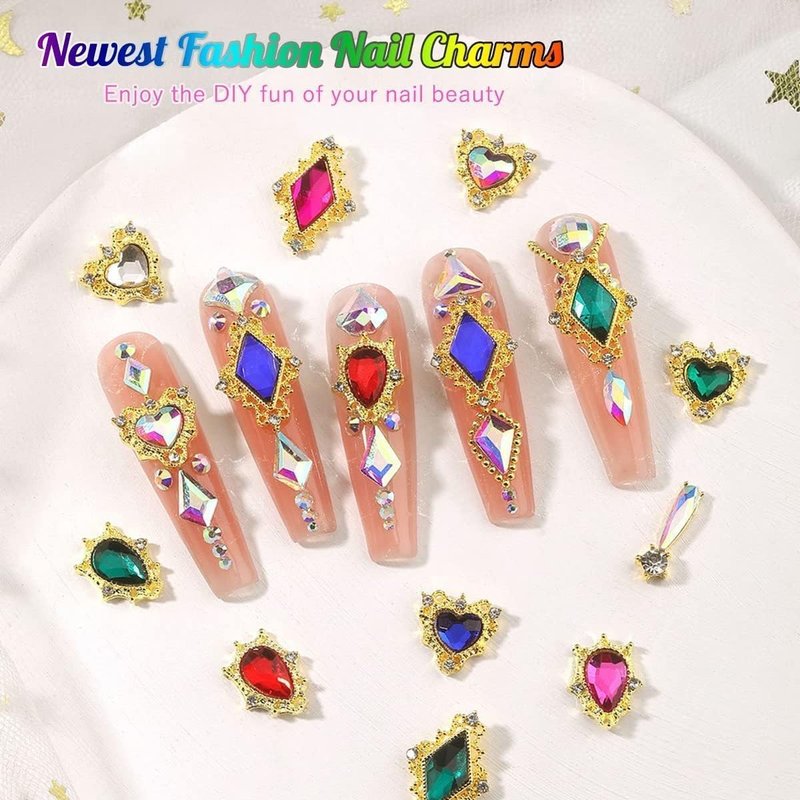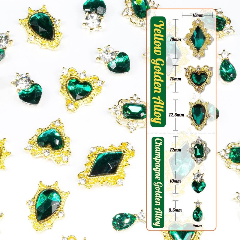 - ❤【1 Box 6 Kinds Delicate Luxury Style Design Nail Art Supplies】The crystal Emerald Green luxury nail art supplies has 6 different design, 2 pair per design, designed with heart, waterdrop, prismatic, rectangle, and other different shapes, surrounded with small rhinestones, looks luxurious and bling. Our Luxury nail decorations are made of 3D alloy, hard and not easily break, have delicate surfaces, light and easy to use for a long time, suitable for experienced manicurists and learners.