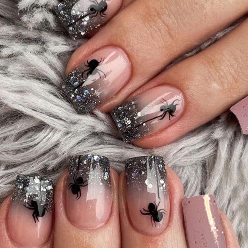 - 【Easy to Use】Glitter nail tips designs spider false nails with gel glue sticker can get your favorite manicure in just 5 minutes without waiting at the nail salon. Some simple steps allow you to get the same impressive professional effect at home.