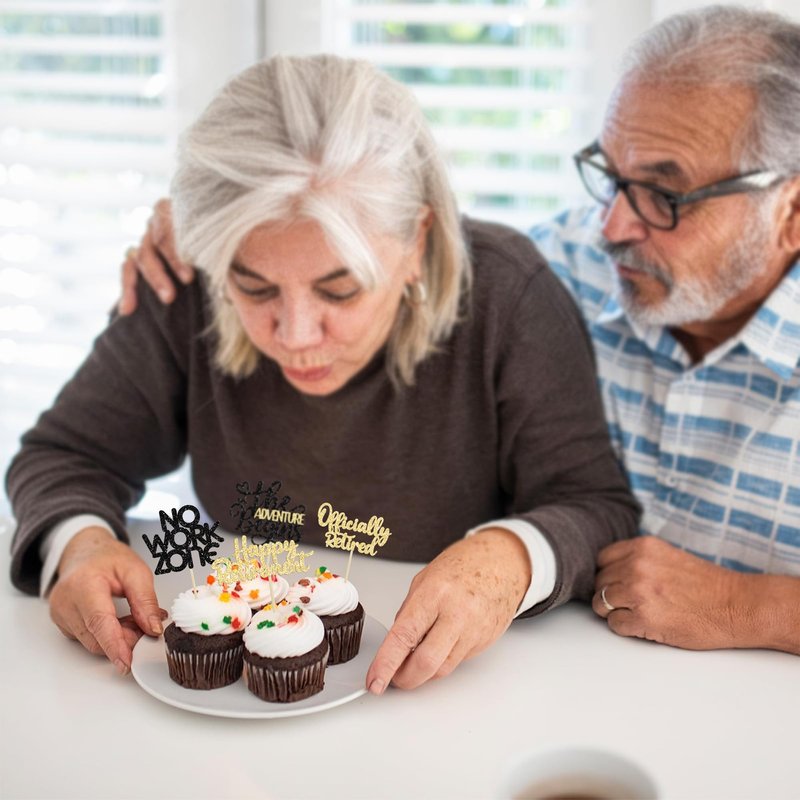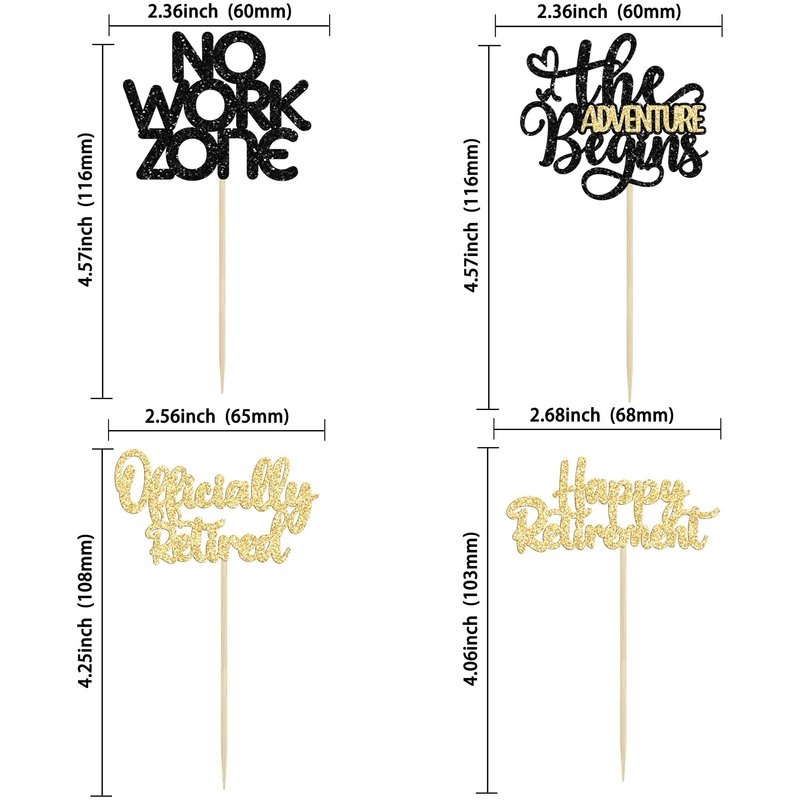- 【NO Required】: 24Pcs Happy Retirement Cupcake Toppers can put in the cake directly! These Happy Retirement Cupcake Toppers saves your time and super easy to use. You can easily dress up your birthday theme cakes, yes! but don't stop there, put them into desserts, cookies, fruit pieces, appetizers, muffins and so much more!