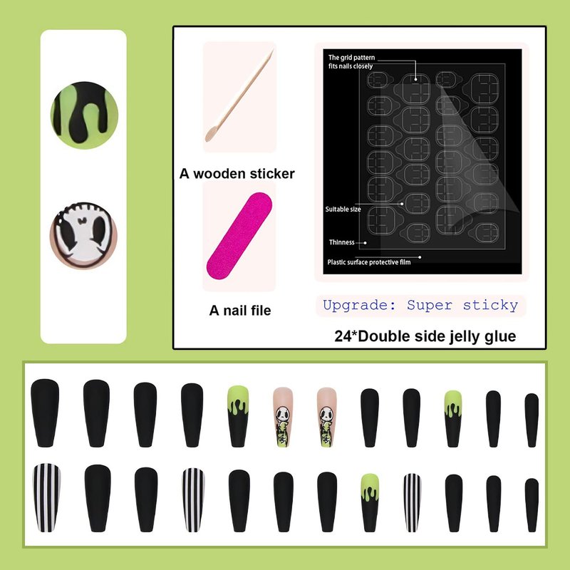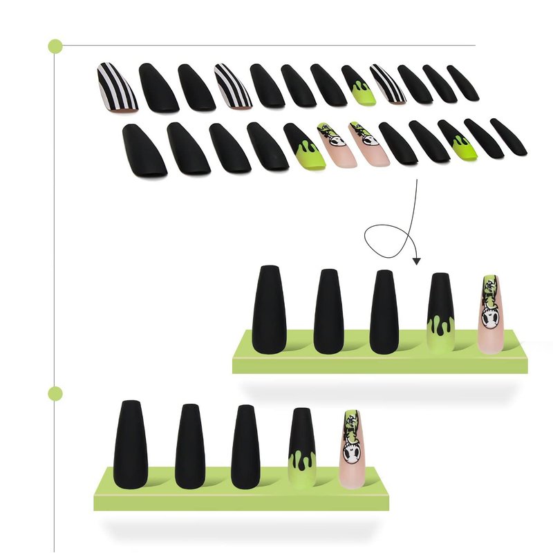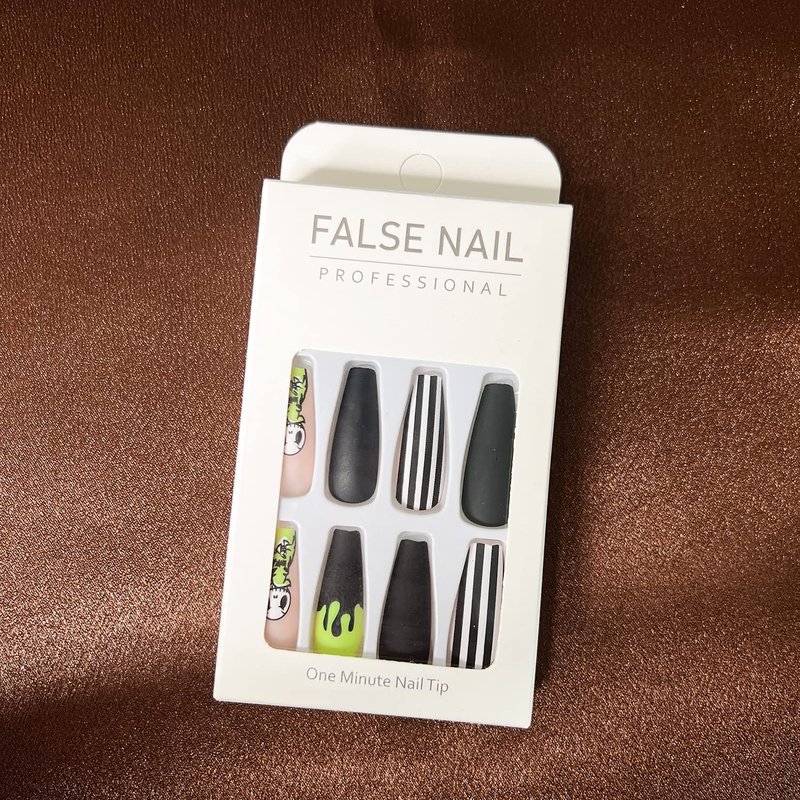 24Pcs Long Press on Nail Halloween Coffin Fake ...