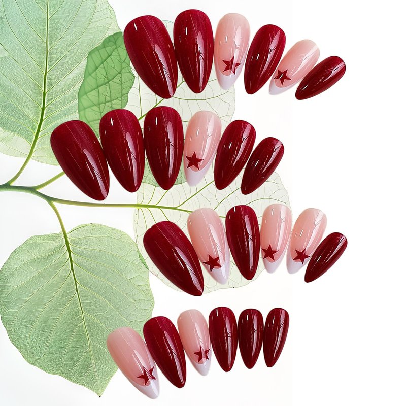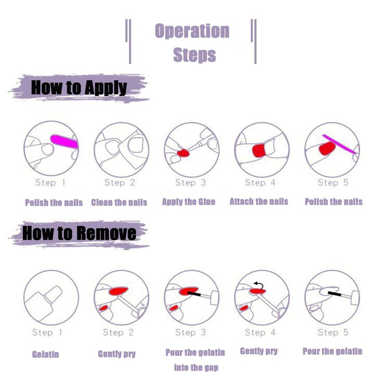 • 【Press on Finger Nails Easy to Use】Instead of spend lots time and money at nail salon, you can change you nails style in 15 min anytime and anywhere.(The five-point star fake nails will stay longer if you clean your nails before use, and avoid water within the first hour of wearing)
