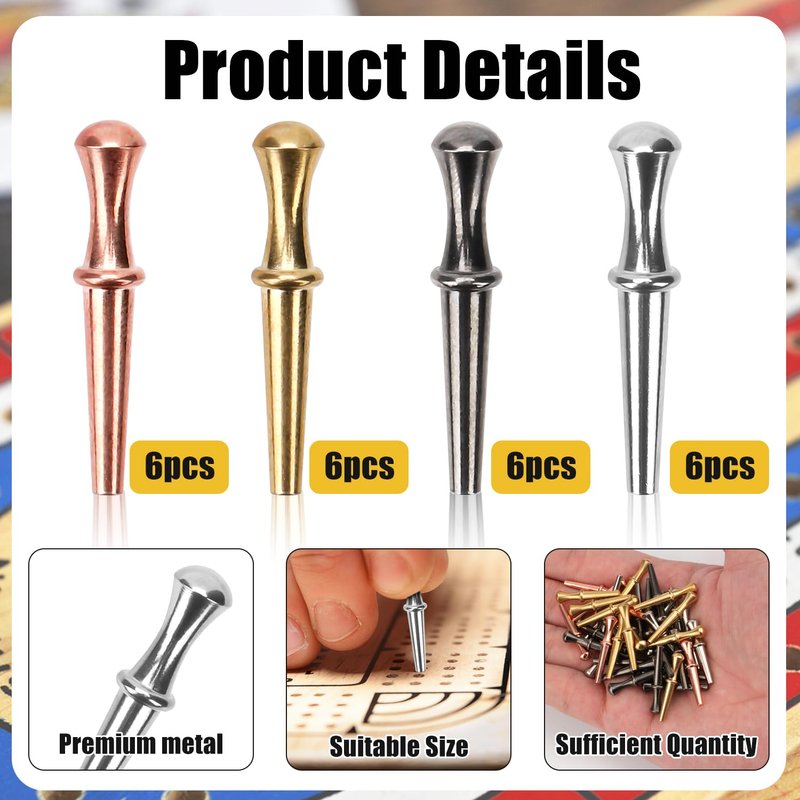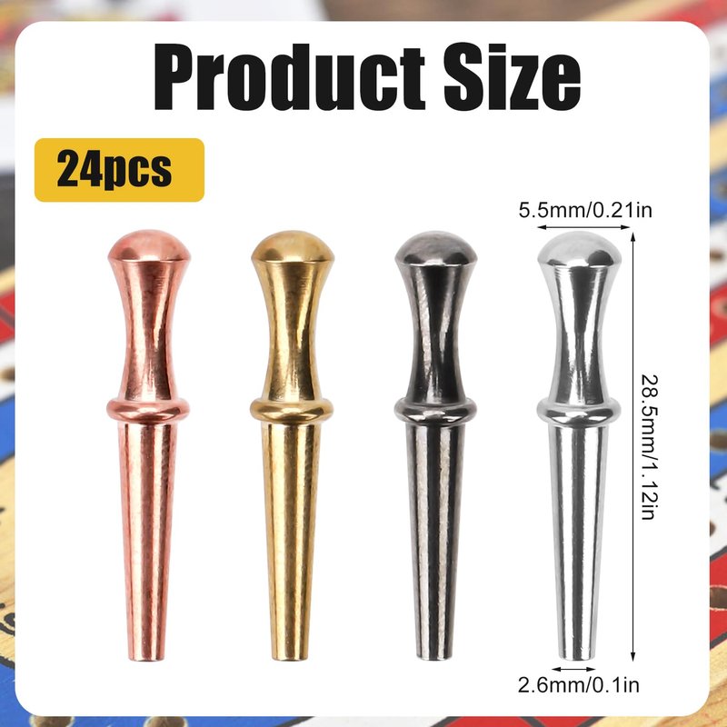 24pcs Metal Cribbage Pegs, Cribbage Board Pegs Fit 1/8 Holes Traditional Crib Board Pins Tapered Design Cribbage Board Game Accessories (4 Colors)