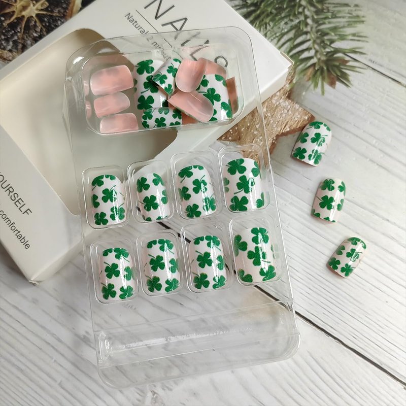 - ☘️【Service Guarantee】Strives to bring you the quality shamrock full cover short fake nails .Please feel free to contact with us if had any questions, we will try our best to solve your problem and satisfy you. Please email us if you received wrong item.