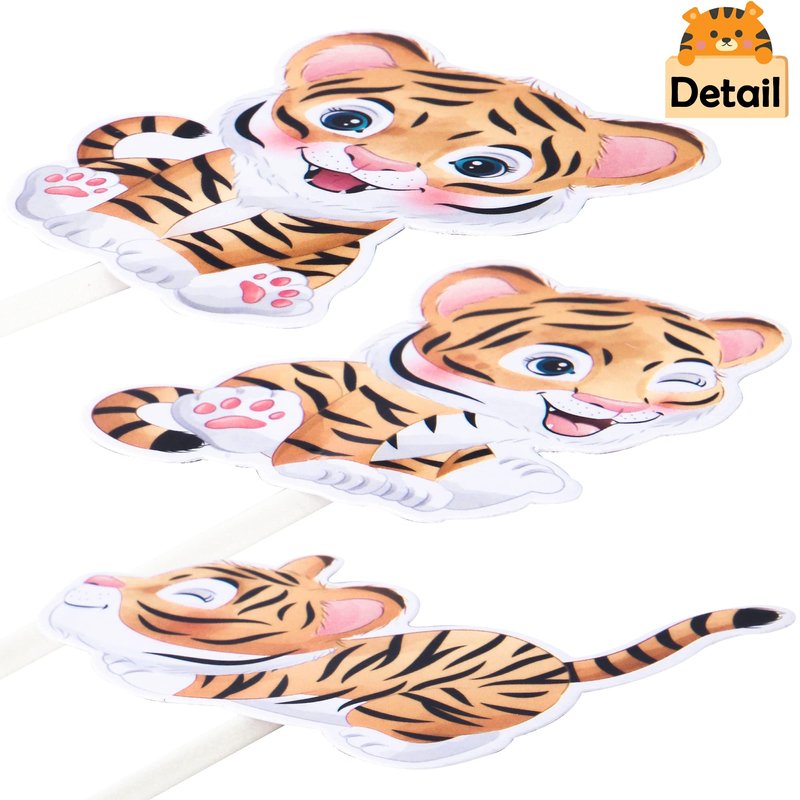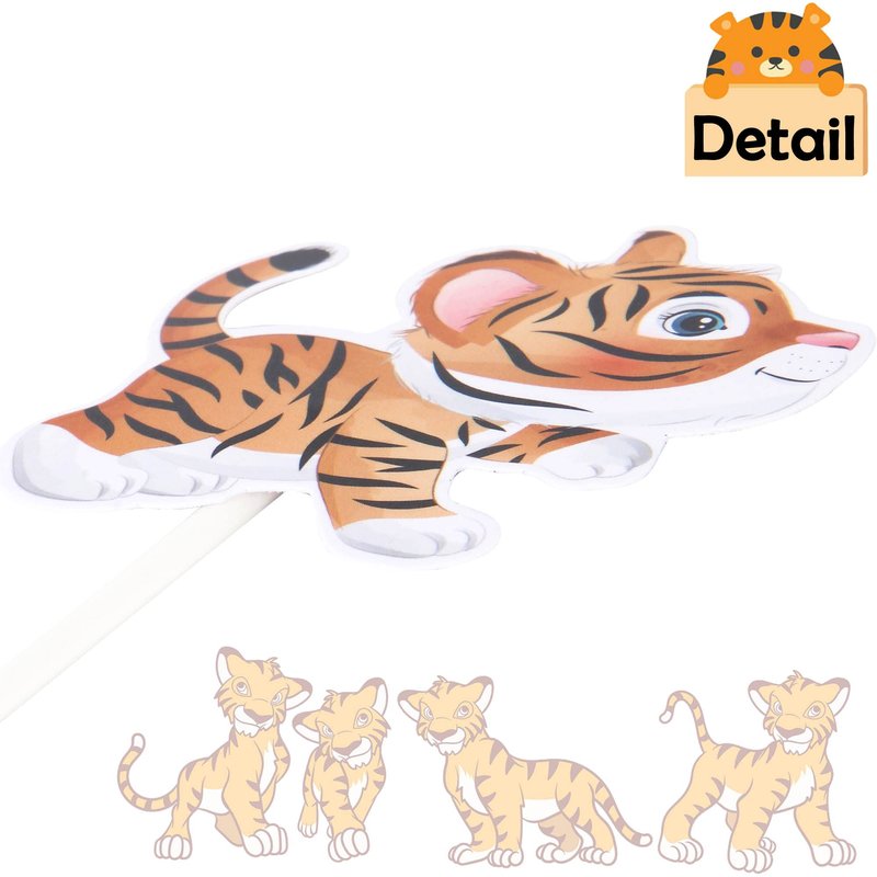 - ❤【Pre-assembled tiger cupcake toppers decor】The tiger theme cupcake topper has been pre-assembled and can be used directly at the birthday party to decorate your cake to showcase your cake artwork, saving your time and making you feel better at your tiger theme party.