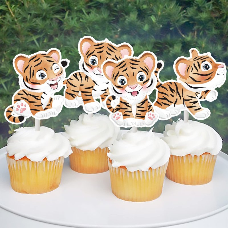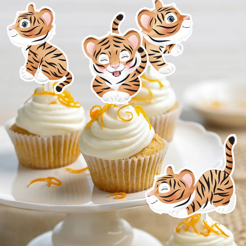 24Pcs Tiger Cupcake Toppers Tiger Party Supplies Safari Baby Shower Decorations for Tiger Theme Jungle Safari Animal Birthday Party Baby Shower