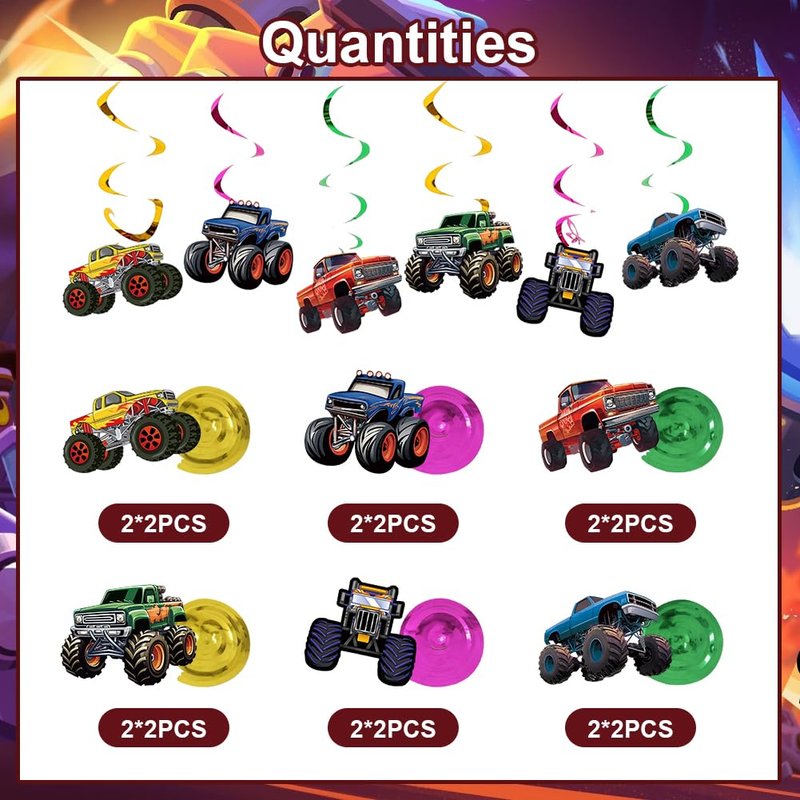 - Superior quality: The Truck hanging swirl decorations is made of safe plastic foil and high-quality cardboard, You can just take it off and throw it away after the party or save it for reuse next time!